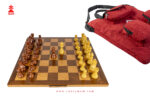 A luxury natural Linen chess bag, padded with thick layer of foam to protect your valuable wooden board, pieces and timer. A red silky soft lining to protect wooden board from any scratches, has 4 pockets, one for light pieces, one for dark pieces, one for timer and the last for the wooden board, it has a handle and a shoulder strap so no worry to have your valuable package everywhere you go. It’s 51 cm x 51 cm for board 50 cm only.